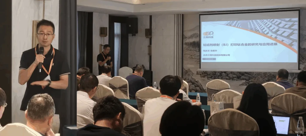 北京合乐HL8•888官网科技股份有限公司作为会议支持单位应邀参会。公司董事长宗贵升博士担任金属材料增材制造关键制备技术分会主席。公司研发副总陈庆文在30日下午的论坛中作了题为《粘结剂喷射(BJ)打印钛合金的研究与应用进展》的特邀报告。报告聚焦BJ技术高效率、低成本、无热应力的核心优势,深度解析了合乐HL8•888官网科技在钛合金成型领域的创新突破: